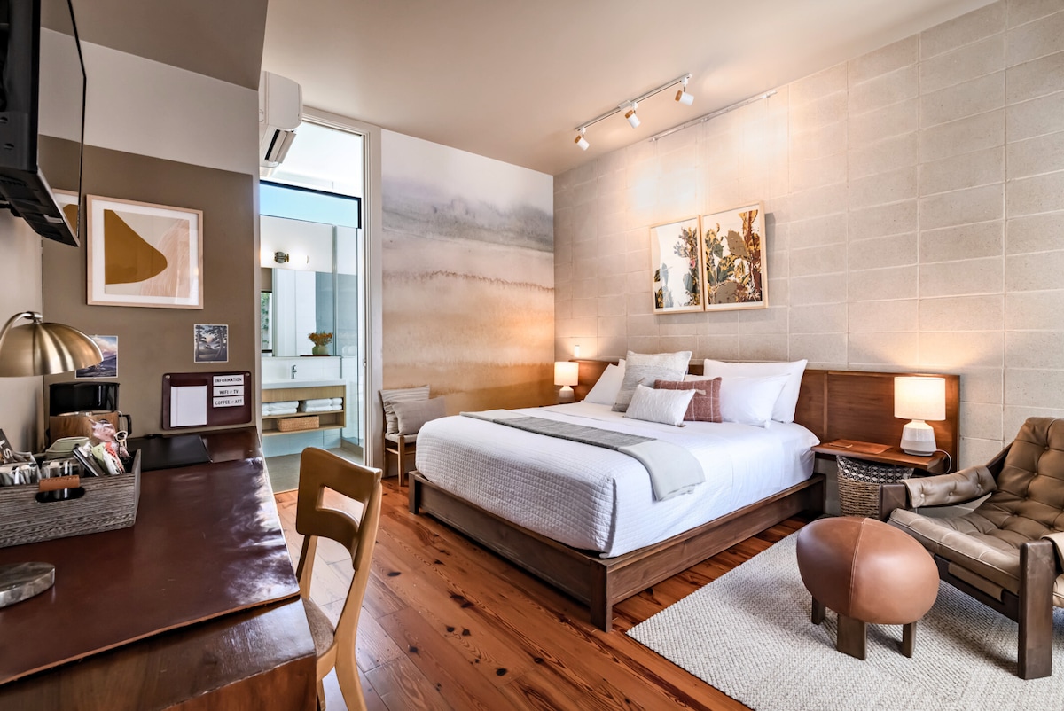 Descubre un hotel en Austin, Texas, que se siente a un mundo de distancia, donde los toques de la costa amalfitana y Texas se mezclan para inspirar un estilo de vida como ningún otro. Aquí se encuentra una alegría por vivir y un llamado a la naturaleza. Después de pasar una tarde bebiendo prosecco en el patio o viendo la puesta de sol junto a la piscina resplandeciente, empezarás a sentir que te has encontrado en unas vacaciones en el extranjero, a pesar de que estás a pocos minutos del centro. Las habitaciones Deluxe King ofrecen vistas a la propiedad del hotel y una ducha a ras de suelo.