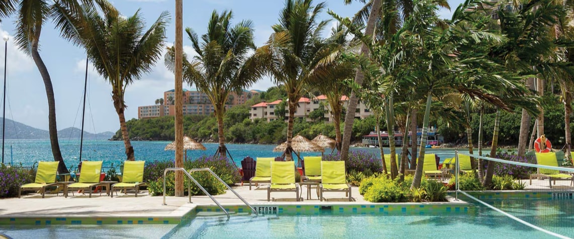 Este centro vacacional, situado entre una franja de palmeras ondulantes, es el destino de ensueño tropical perfecto. Así que toma una tumbona, comienza tus chanclas, bebe una deliciosa bebida en barco y deja que tu mirada descanse sobre una extensión de cielos soleados, aguas cristalinas y la isla de St. John a lo lejos.