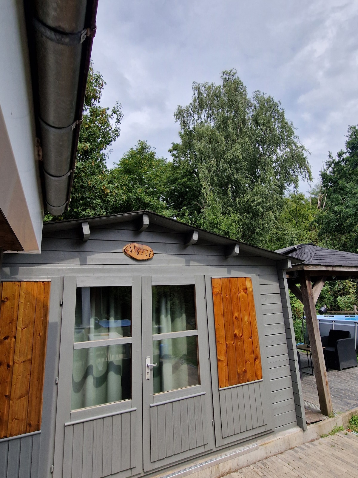 Esta cabaña está rodeada de bosques. Es el lugar ideal para relajarse y disfrutar de la naturaleza. Está totalmente equipado con todos los lujos, y podés disfrutar de una taza de café o té afuera en la hermosa terraza con jacuzzi. En el baño, vas a encontrar una maravillosa bañera para relajarte. La casa rural está ubicada en una zona boscosa, y tenemos propiedades similares adyacentes, pero cada una tiene su propio bosque privado. La edad mínima para nuestros huéspedes es de 25 años.