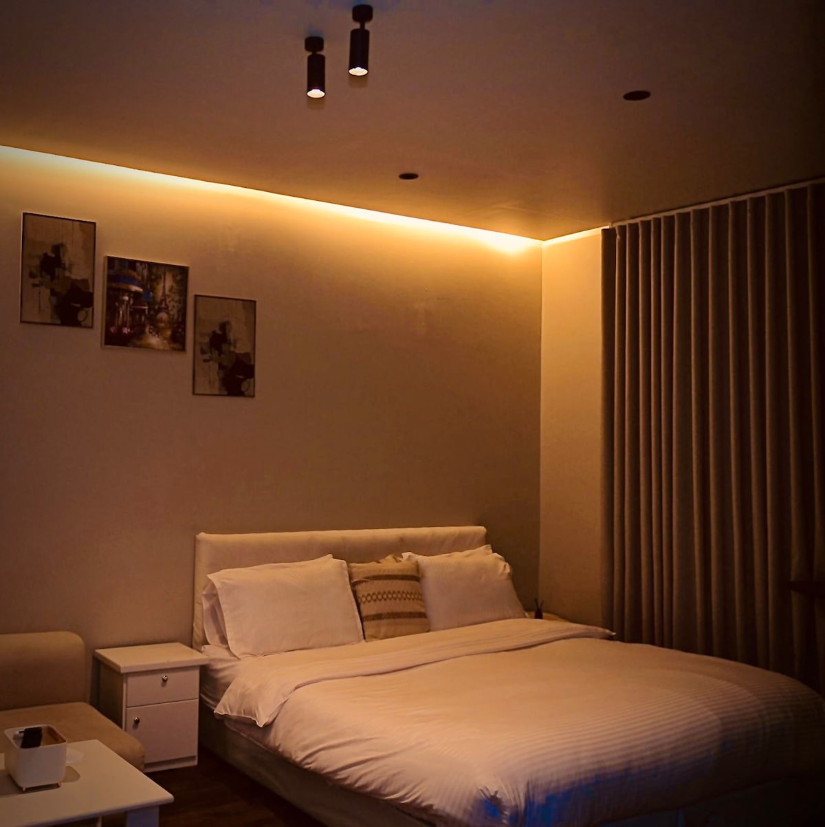 **Ubicación privilegiada 📍** El apartamento está situado en un complejo residencial de lujo, Cerca de un supermercado, una lavandería y un paseo deportivo. A solo 5 minutos del puente de Baréin🇧🇭. ** Cómodo y moderno apartamento tipo estudio con sistema de entrada inteligente (Self Check-in) 🔑** **Características:** - Amueblado recientemente con muebles clásicos. - Equipado con conexión a Internet🛜 ⚡. - Incluye un rincón de servicios completo (nevera, horno, microondas, hervidor y cafetera espresso)☕️. - **Instalaciones:** - Contiene zonas verdes y piscina (Horario de baño: de 9:00 a 18:00)🌞. ¡Disfruta de una estancia cómoda y especial !