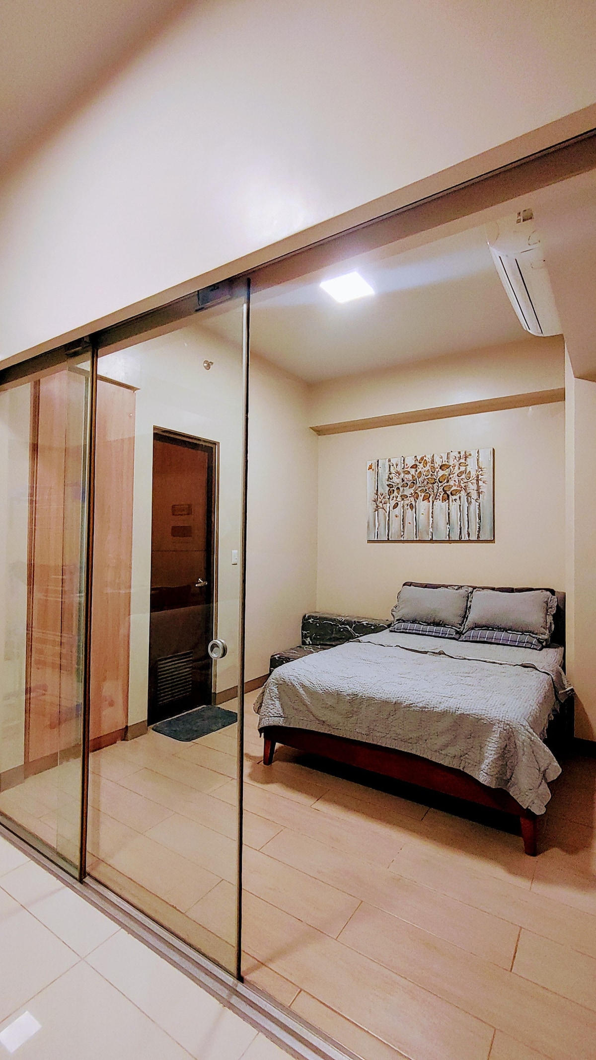 Tu hogar lejos de casa, donde la suave brisa se encuentra con las suaves arenas, las arenas se encuentran con el mar brillante y el mar se encuentra con el vasto océano bajo el cálido abrazo del sol. Disfruta de comodidad y tranquilidad en nuestra unidad de esquina de 1 dormitorio con una cama tamaño queen, un sofá cama para los 2 huéspedes adicionales, balcón con una cama de día para disfrutar de la impresionante vista. Ubicado en Tambuli Seaside Living Tower D, a solo 12 km del Aeropuerto Internacional de Mactan. *Mínimo de 2 noches
