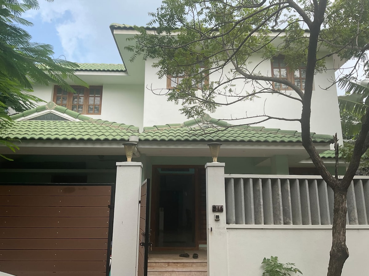Your best holiday home in Chennai facing the gorgeous "Bay of Bengal" We welcome you to our five bedroom Villa, plus Penthouse, within five minutes to the beach. Picture perfect setting designed to help unwind, relax and entertain an extended family and friends. Obviously, Pent-house provides the best view of the beautiful Bay of Bengal ocean. Built with finest marble, high quality teak wood and imported German fitting to ensure guests enjoy the nature at its best.