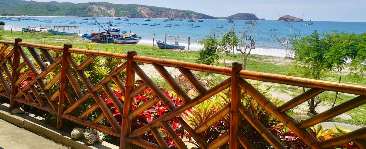 Breathtaking beach front bungalow, panoramic ocean view. We really are on the beach for beautiful sunsets on your balcony! Air conditioning, full kitchen, FAST Wi-Fi. Ideal for digital nomads. Located in La Punta residential zone the best area of Montanita. Close walk to restaurants, surf schools, and yoga studios. Facing the surf point where you catch the best waves in town. The main strip/downtown with bars and clubs is just about a short walk (5 mins), far enough for a good night sleep.
