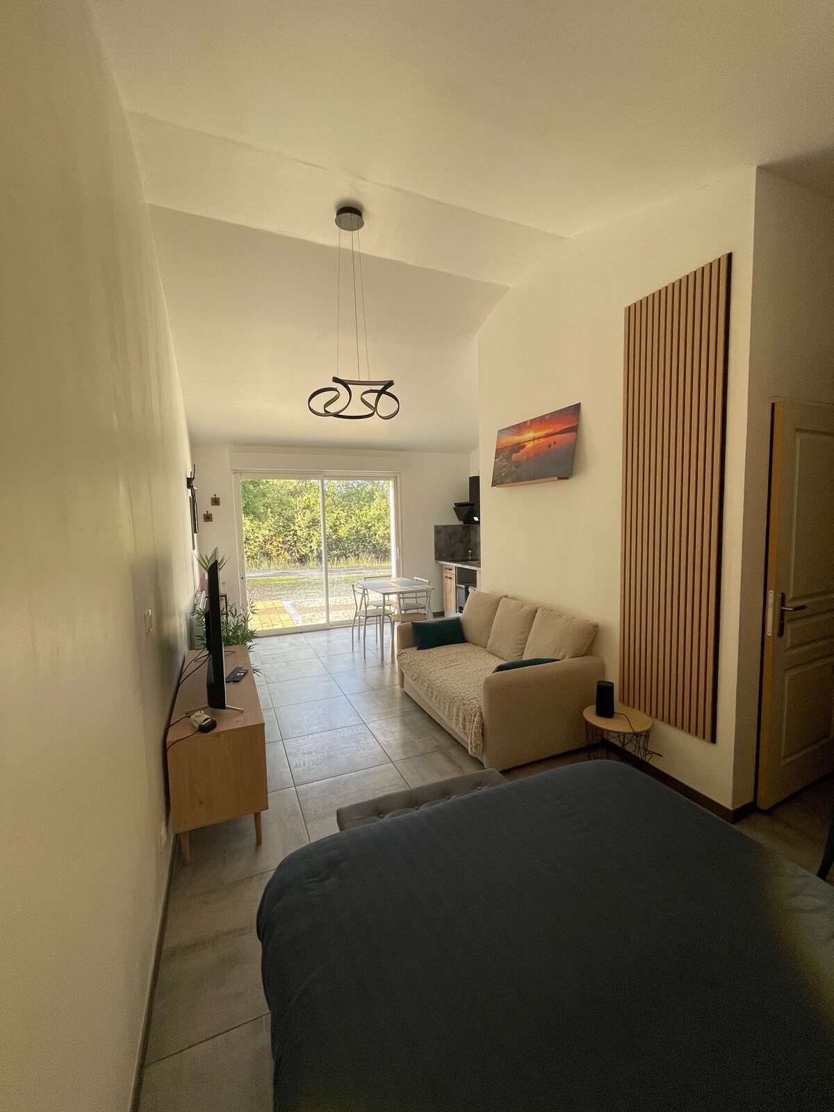Estudio de 20 m² para 2 viajeros, bien equipado, a 10 minutos a pie del centro peatonal de Saintes. Junto a nuestra casa, tiene una plaza de estacionamiento en el jardín. Compuesto por una habitación principal con cocina americana y sofá cama, baño con inodoro triturador. Se proporciona ropa de cama y toallas, mesas y sillas disponibles en el jardín. Altura de ducha reducida, cómoda para un viajero de menos de 1,85 m. Cicloturistas, sus bicicletas podrán dormir a cubierto, recarga posible.
