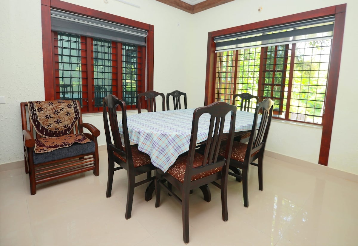 Te damos la bienvenida a tu refugio tranquilo cerca de Pathanamthitta La vista te llena los ojos con árboles altos y hermosos que se alzan con orgullo frente a la casa. La mayor parte de la casa se renovó recientemente, por lo que ofrece comodidad con un toque fresco. Ten en cuenta que nuestra casa está a solo 200 metros de la carretera principal, es tranquila, segura y está rodeada de vecinos amigables. Este espacio amplio y sereno es perfecto para los amantes de la naturaleza que buscan paz, aire fresco y un ambiente relajante para descansar y sentirse como en casa.