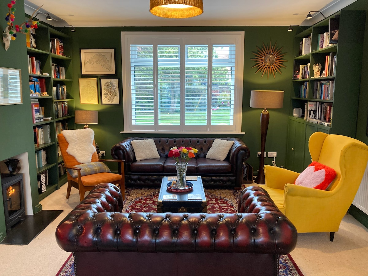 Una casa familiar con una colección de arte seleccionada, alfombras persas y muebles de todo el mundo. Situada a 10 minutos a pie de los recintos del festival, la Universidad de Edimburgo y el centro de la ciudad, la casa conserva una sensación de tranquilidad campestre. La puerta principal se abre a un camino hacia Arthur's Seat y la puerta trasera a un aislado jardín orientado al sur, con asientos y chimenea para las noches frías. Tenemos un exuberante jardín con una espiral de hierbas para ensaladas y cocinar, y tiendas, panadería y restaurantes a poca distancia a pie.