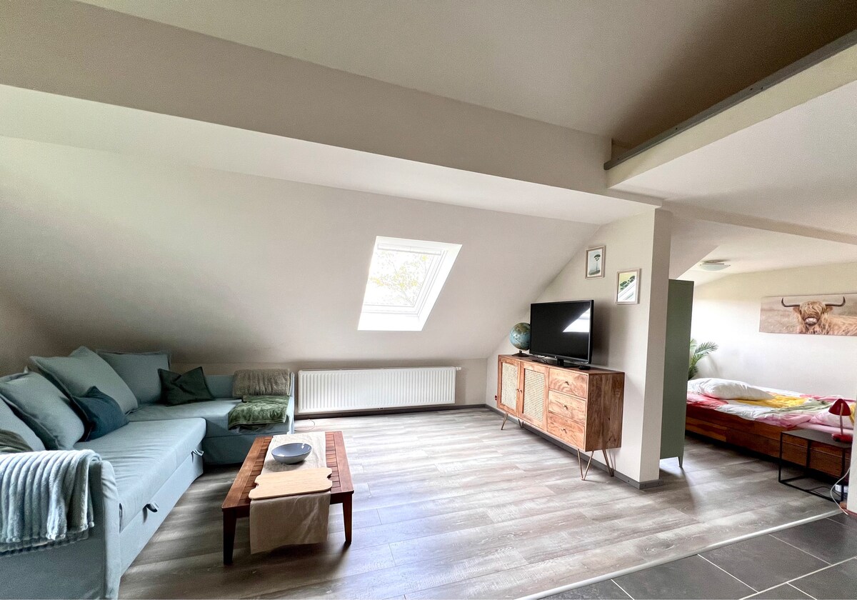 En nuestra casa (a 10 km del centro de la ciudad) encontrarás un apartamento independiente de una habitación con cocina americana y baño propios. Es fácil llegar a la ciudad en coche (15-20 minutos), yendo en la dirección opuesta está a poca distancia de Eifel, Hohes Venn y Monschau. Check-in a partir de las 15:00 horas. Salida antes de las 12:00 horas. (Es posible realizar el registro de entrada anticipado y el registro de salida después de la hora establecida con cita previa, dependiendo de las reservas conectadas).