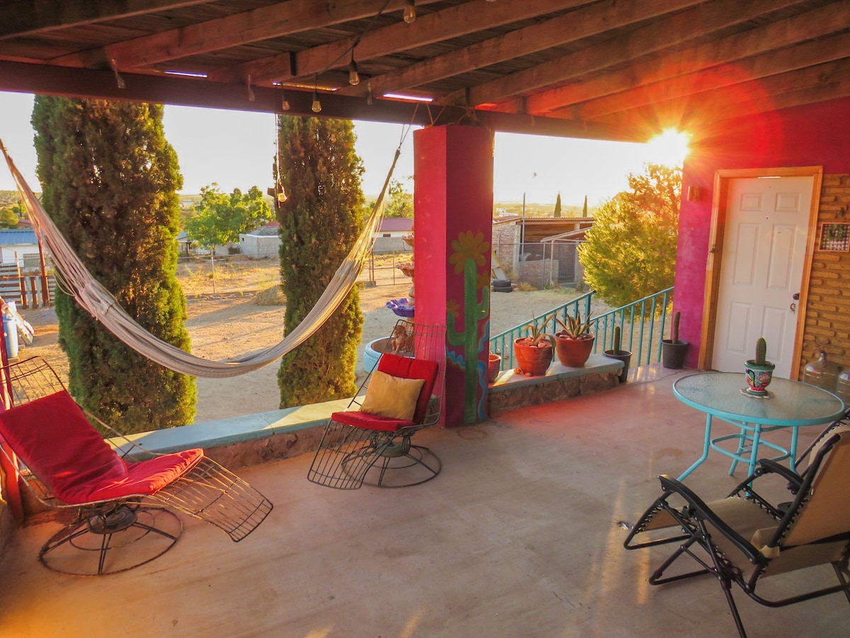 High Desert & Lake Retreat, un lugar de energía para el rejuvenecimiento, junto a Anza Borrego Parkland con cientos de hermosos acres de senderismo, pero a 5 minutos a pie de los servicios del centro y un lago de aguas termales para nadar. Disfruta del interior lleno de arte original, inspirado en el alto desierto. Recorre los terrenos con esculturas perceptivas, viejos vagones, bañera de meditación bajo las estrellas, torre silenciosa y un vagón de cola. A 65 millas de las atracciones de San Diego. Se admiten mascotas, solo entrenadas para la casa. Descuentos semanales y mensuales.