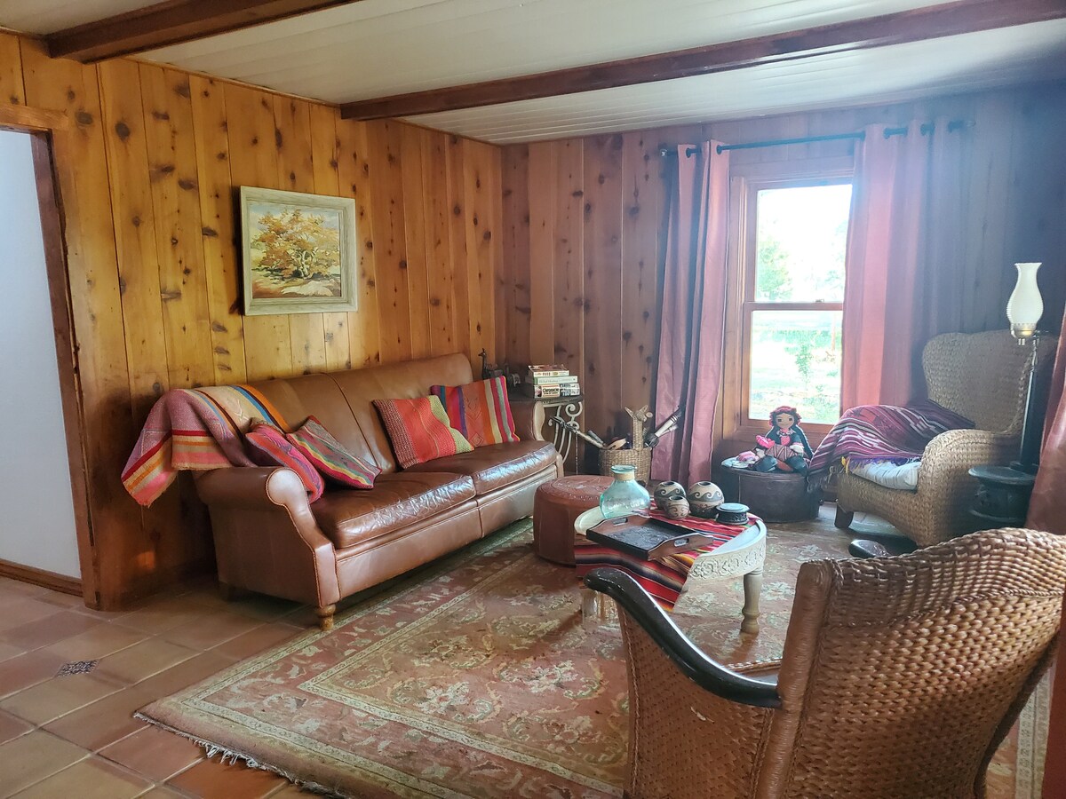 Relájate con toda la familia o el grupo en este alojamiento donde la tranquilidad se respira. Ingresa a esta serena propiedad de 5 acres que tiene una casa con 3 dormitorios y 2 baños. Una habitación exterior adicional que tiene 1 dormitorio y 1 baño. Cualquier persona al aire libre, o cualquier persona que busque desconectarse del estrés diario de la vida, estará en el cielo aquí. El silencio aquí es irreal y muy pacífico. Campo lo tiene todo; desierto, senderismo, montañas, lagos, ciclismo, paseos a caballo, pesca, museos y paseos en tren antiguo.