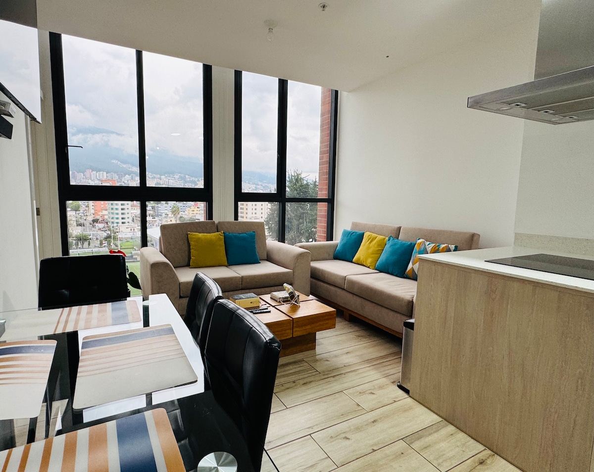 -Suite nueva de lujo, amplia, cómoda en Edificio Eco-eficiente -Piscina , sauna , turco, hidromasaje , Gym, App para utilizar áreas (sujeto a reserva según disponibilidad del edificio) -Ubicado en la mejor zona de Quito, zona segura de fácil acceso con vehículo y transporte público -Walking Score 87, cerca de todo caminado , mas de 200 negocios (restaurantes de lujo, centros comerciales, farmacias, sitios turísticos y parques)