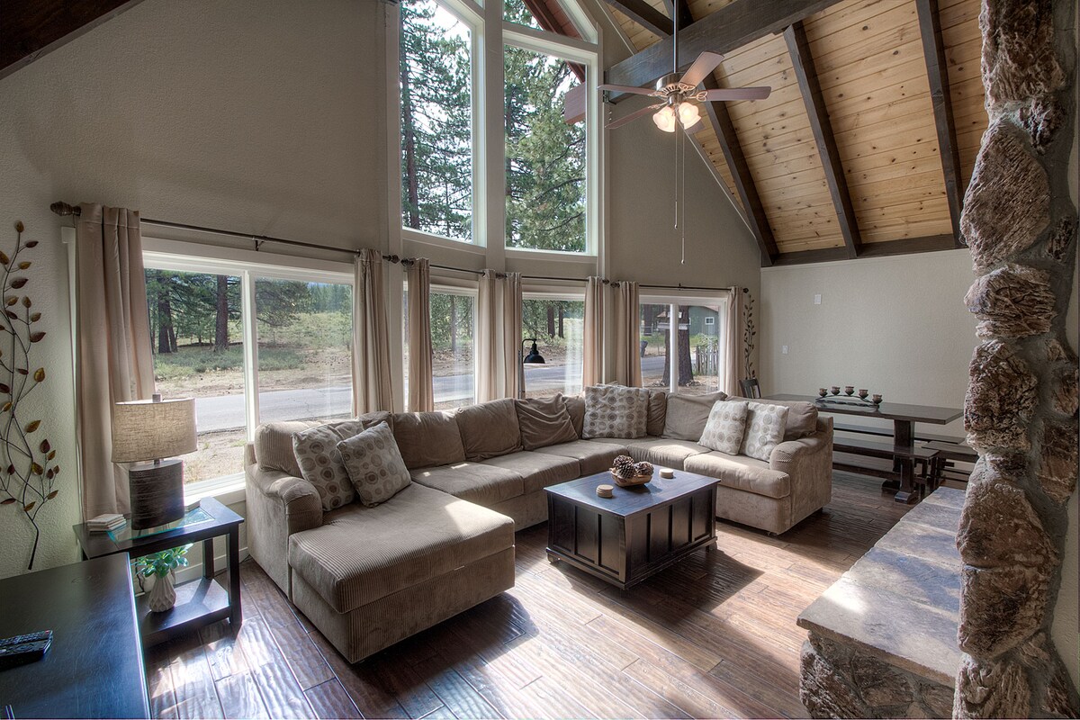 Por favor, disfruta de mi hermoso chalet de 3 dormitorios/2 baños más loft en el bosque. La propiedad viene con privacidad y comodidades modernas. Disfruta caminando hasta el lago Baron con parque, canchas de pickle ball, pasea por el río o disfruta del campo de golf cercano, esquí, senderismo, ciclismo, música, casinos y todo lo que el lago Tahoe tiene para ofrecer. Capacidad para 6 personas cómodamente... ¡Es una acogedora cabaña Tahoe! Ven y disfruta de todas las hermosas estaciones de Tahoe. Permiso VHR n.º 072845 TOT n.º T64653