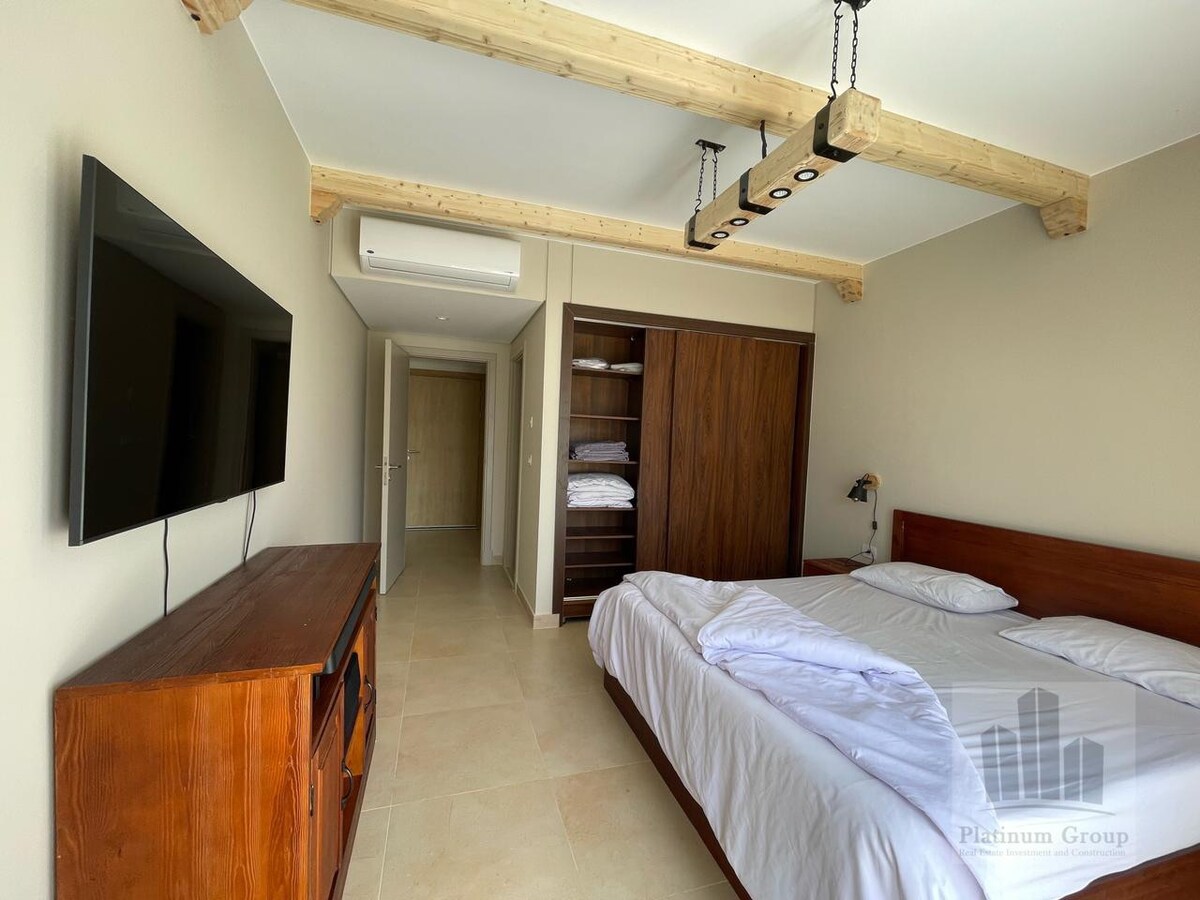 Our lovely apartment has unique modern furniture, not only that, but the apartment also has a good sea view with high privacy It is only 3 minutes from the apartment to your private beach, and the same to the pools The resort has its private beach 24/7 security Close to all services, 10 minutes to El Gouna 10 minutes to Dahar Square Please note the price does not include water, internet, and electricity, in case of short or long-term, one month or more