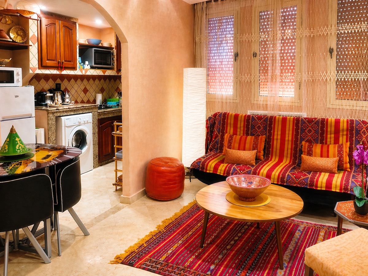 Bienvenue dans notre appartement cosy, idéalement situé à El Jadida 🌴 Ici, tout se fait à pied : la plage, les cafés, les commerces… Un emplacement parfait pour profiter pleinement de votre séjour, que vous soyez en vacances, en télétravail (fibre Optique Orange) ou simplement en quête de douceur marocaine. Pour les longs séjours : réduction de 40%