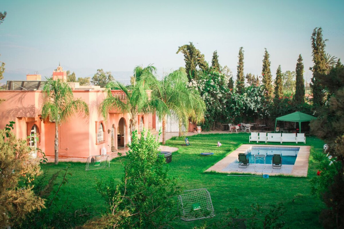 Villa avec piscine sans vis a vis a proximité de Marrakech Tres bien equipèe et bien securisèe. Endroit tres calme et trenquille a l'exterieure de Marrakech cotè des maison d'hote et proche de tout comoditèe.