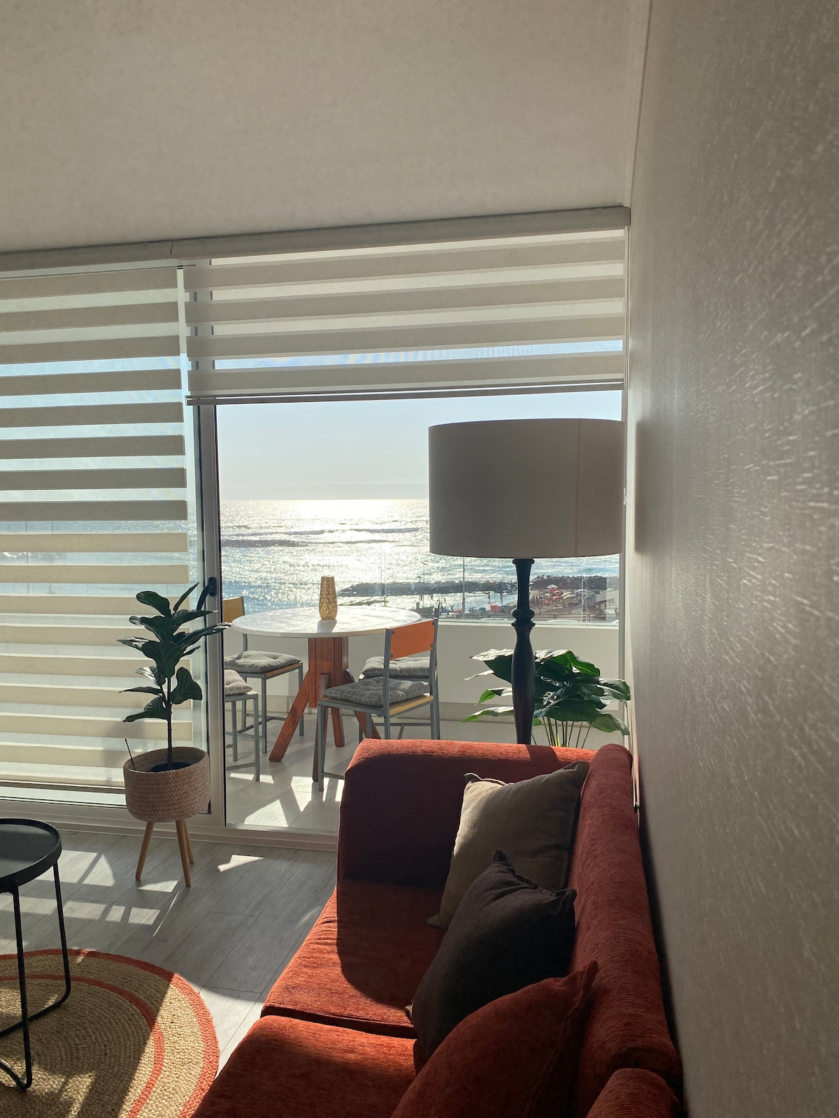 Depto nuevo con una espectacular vista al mar, situado frente a una de las mejores playas de Arica (Laucho), a pasos de restaurantes, isla del alacrán y centro histórico de la ciudad. Full amoblado con equipamiento de lujo y las mejores comodidades, 1 cama King, Tv 75”, 1 sofa/cama, amplio y cómodo sillon de cuero, cortinas black out, area de trabajo, toalla de ducha, secador de pelo, plancha de ropa, amplio refrigerador. Con piscina y estacionamiento gratis dentro del condominio.