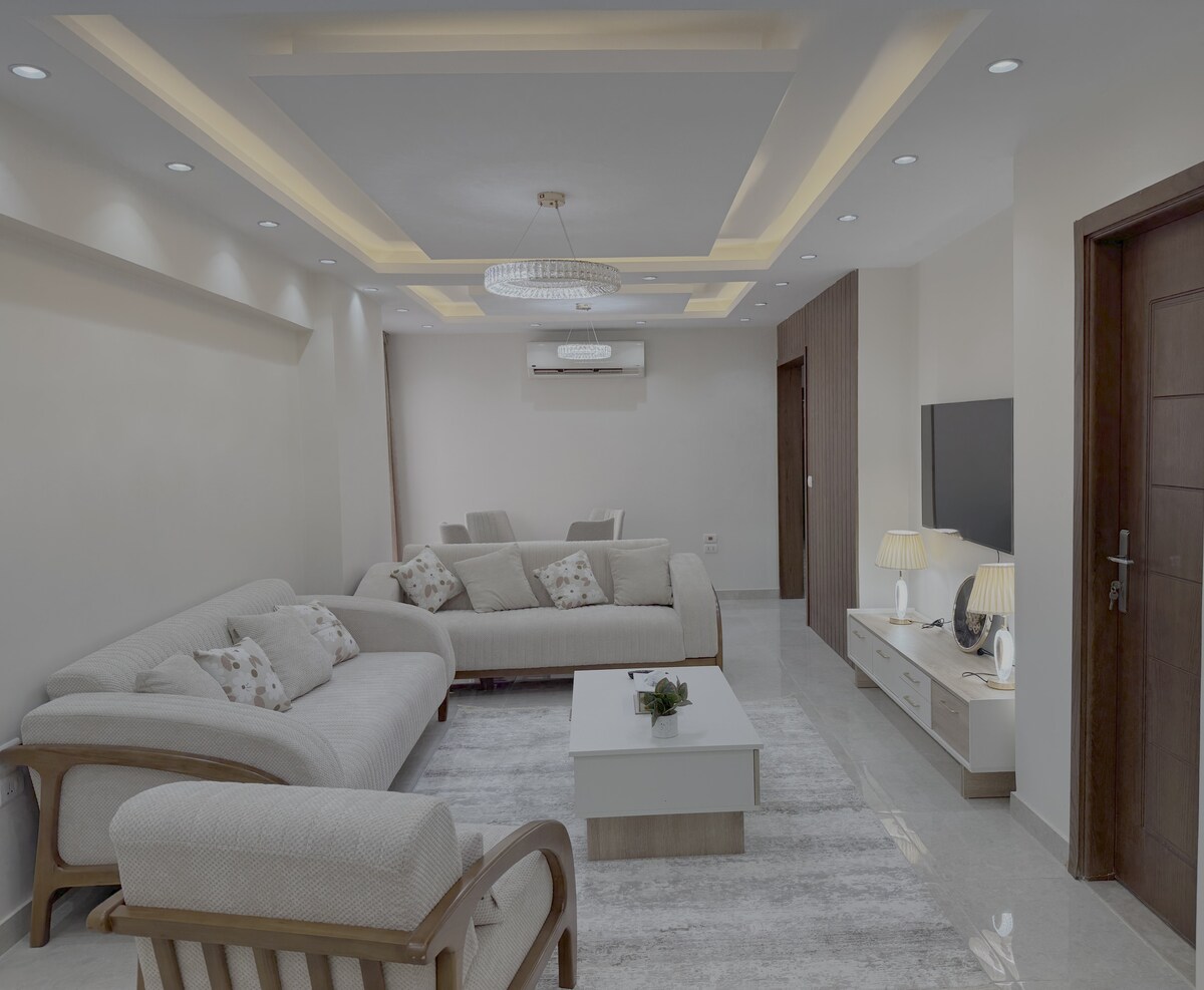 Un apartamento acogedor, nuevo y bien equipado en un edificio nuevo y elegante con acceso directo a la carretera de circunvalación que te ahorrará mucho tiempo de los atascos de El Cairo. Atracciones cercanas y distancia 1- Carrefour Maadi a 7 minutos 2- Plaza Tahrir/ museo a 20 minutos 3- Pirámides a 25 minutos 4- Nuevo Cairo a 19 minutos La mejor ubicación para ir a cualquier lugar de El Cairo.