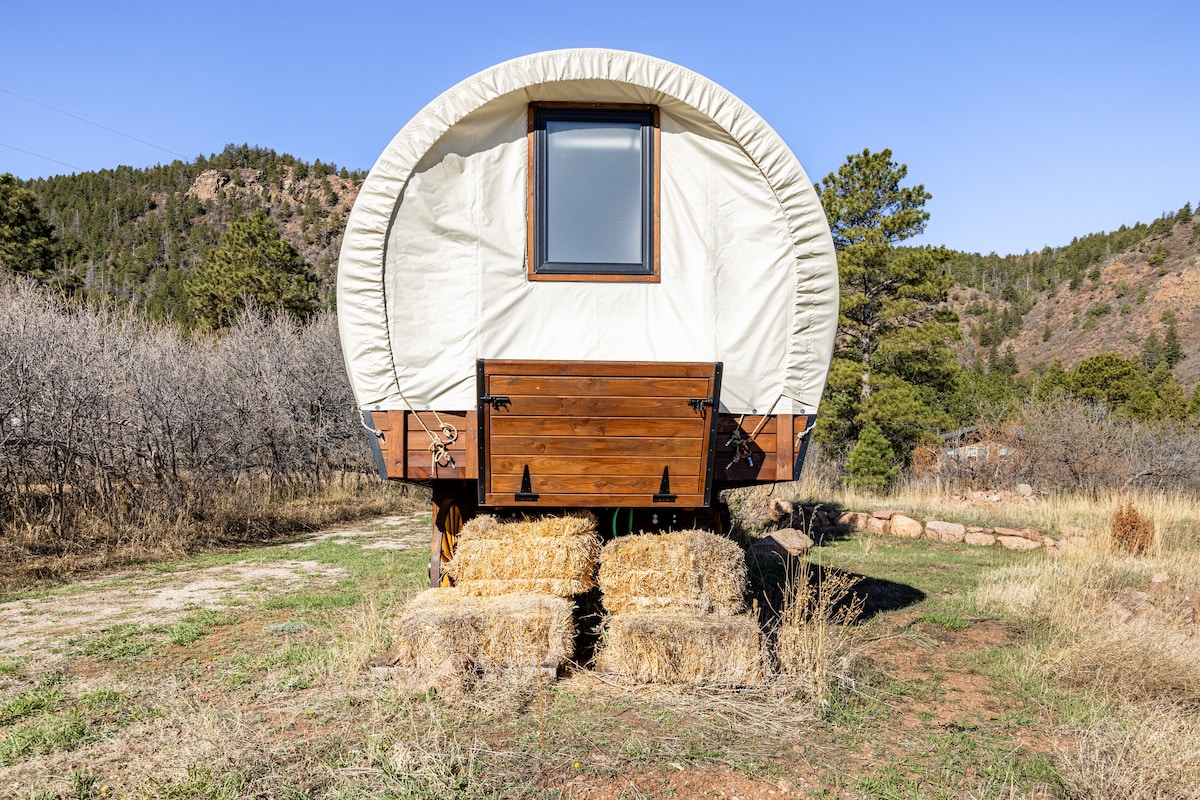 Escape to the Boho Glamper for a cozy retreat in the woods. Located on a multi acre homestead in Colorado Springs,CO, this beautifully unique spot gives you an upscale camper experience along with the opportunity to connect with nature. Your outdoor space includes a large picnic table, cafe table and fire pit lounge. Consider this home base while exploring local attractions or stay grounded and off the grid with your own coffee bar station, on property trail and barn neighbors.