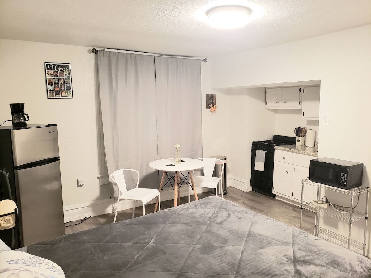 Acogedor 1 dormitorio con cocina y baño. Totalmente amueblado con cama tamaño king. Ubicado en un barrio urbano diverso del centro de la ciudad, NO hay aparcamiento gratuito disponible. Perfecto para aquellos a los que no les importen los paseos cortos. El apartamento está a 3 minutos a pie del estadio de béisbol/fútbol de la Universidad de Southwest, a 10 minutos a pie del centro de convenciones de El Paso, del distrito de entretenimiento del centro y de la agencia de pasaportes.