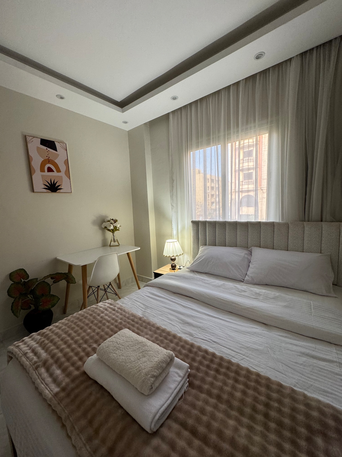 The listed price includes our Standard Package, covering electricity & high-speed Wi-Fi, prepared bed linen (no replacement), towels provided once only, emergency maintenance, a Smart TV with apps installed (no paid subscriptions), and spare key support. A Premium Package is available as a paid upgrade, including housekeeping on demand, premium channels (Netflix, beIN Sports, paid channels), full maintenance, 24/7 premium support, linen & towel replacement, and amenities refill.