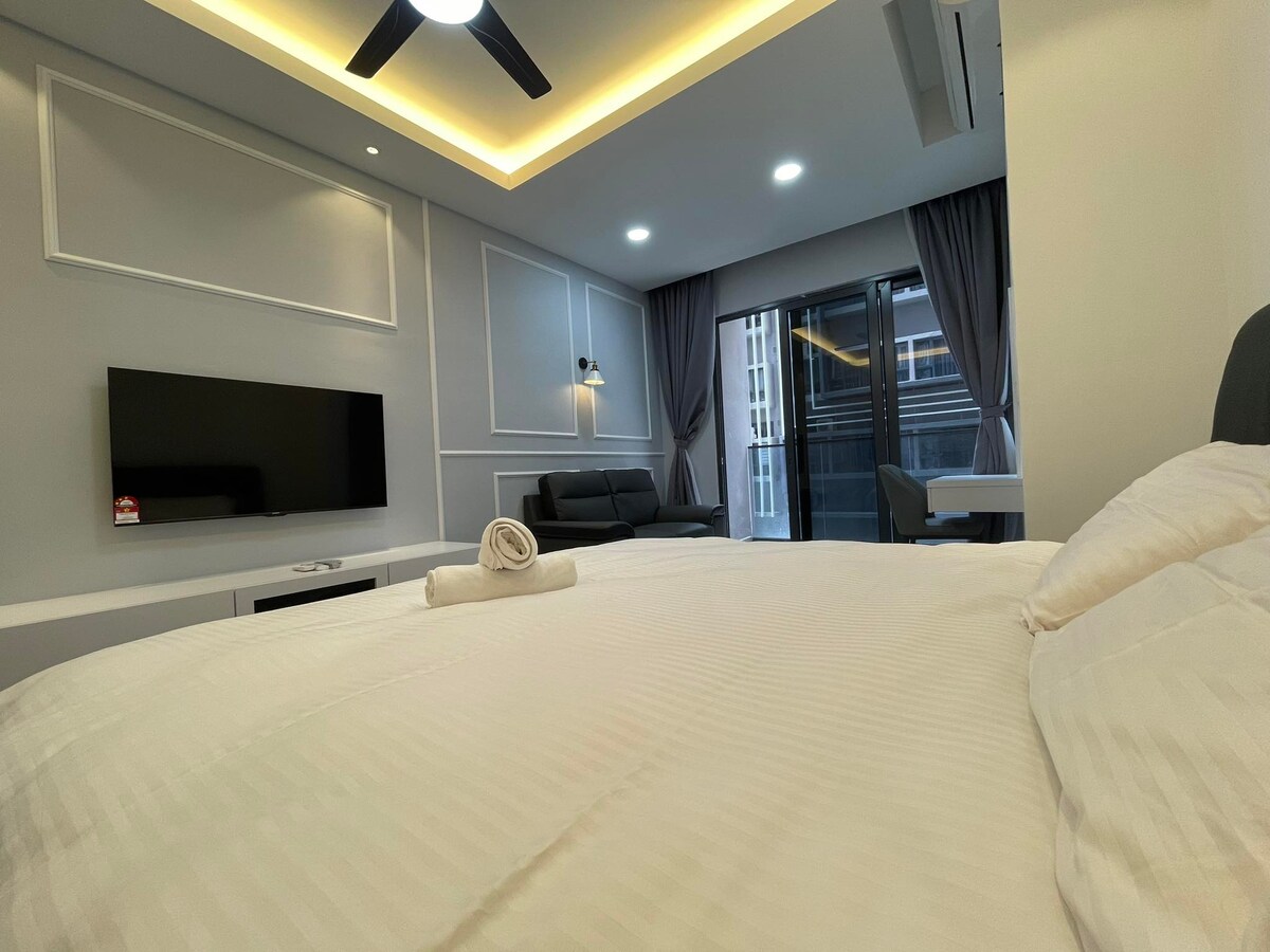 ¡Disfruta de una estancia acogedora en nuestro moderno estudio en Silverscape Residence, Melaka, perfecto para dos! Disfruta de las vistas al paisaje urbano desde el balcón de gran altura. El estudio está totalmente amueblado con una cómoda cama tamaño queen, cocina americana, wifi y TV Box con películas ilimitadas. Situado cerca de atracciones vibrantes, tiendas y restaurantes, es el punto de partida perfecto para explorar Melaka. Los huéspedes también tienen acceso a una piscina infinita y seguridad las 24 horas. ¡Ideal para parejas o personas que viajan solas!