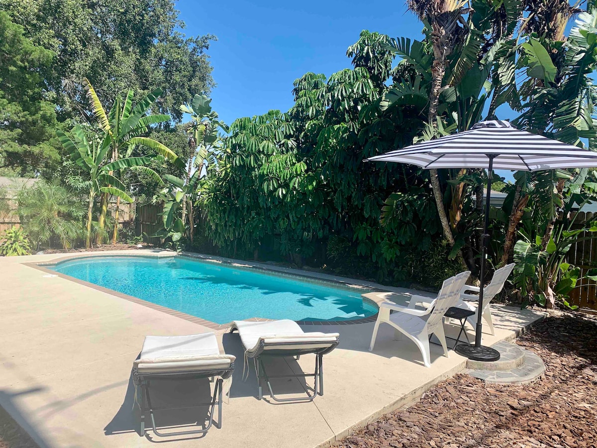 Oasis con piscina privada climatizada Nov–Mar y patio a 5 mi de Tarpon Springs, cerca de Dunedin y a un corto trayecto de Clearwater/Tampa. Ideal para familia o amigos: Wi-Fi rápido, workspace, cocina equipada y BBQ. Check-in 24/7 y parking en sitio. Zona tranquila para dormir; playas y parques a minutos. Nota: calefacción de piscina disponible solo de noviembre a marzo (según clima). Promos de último minuto activas. ¡Reserva hoy!