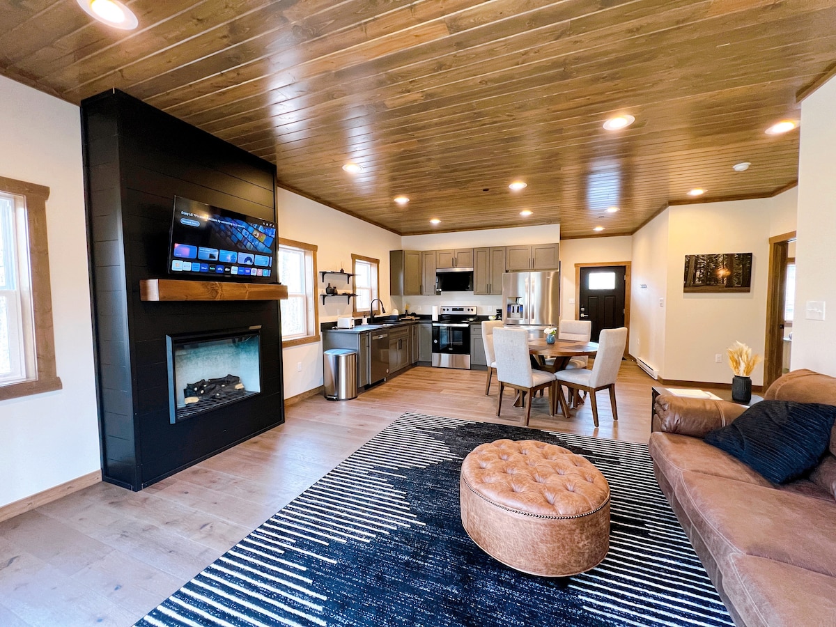 Relájate y desconecta en este alojamiento tranquilo y elegante. Nuevo y hermoso apartamento de un dormitorio sobre un garaje independiente a solo 5 millas de Deep Creek Lake. Espacio bellamente diseñado con una gran cocina de calidad artesanal, cama de nogal neoindustrial tamaño king, tocador y tope de pared de borde vivo, lámpara articulada, todo hecho por artesanos locales. El sofá cama de cuero con cama tamaño queen tiene capacidad para dos huéspedes adicionales. Relájate junto a la hoguera y escucha a los pájaros en el bosque.
