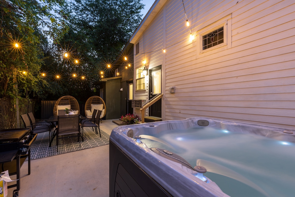 Retrocedé en el tiempo en Dunkle Schoolhouse, donde el encanto histórico se combina con las comodidades modernas. Una vez fue una escuela, ahora bellamente restaurada, es perfecta para familias y amigos que aman la historia y la relajación. Con un piano de cola para bebés, una lista de reproducción seleccionada de Spotify y una arquitectura original, cada estancia es inolvidable. Ya sea que te sumergas en el jacuzzi bajo las estrellas o compartas comidas, este alojamiento te invita a relajarte y a reconectarte con los demás y con la magia del otoño en Hocking Hills, Ohio.