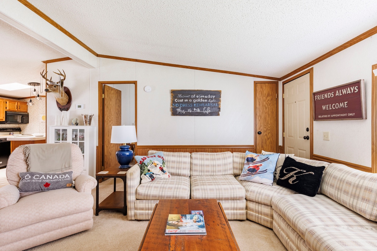 Cómoda casa móvil con una acogedora sensación de cabaña a poca distancia a pie del encantador pueblo de Ellicottville. Disfruta de un corto paseo a innumerables restaurantes y tiendas, con las pistas de esquí de Holiday Valley, campo de golf, ciclismo de montaña, curso de cuerdas y más a solo 1,5 millas de distancia. Otras atracciones incluyen una segunda montaña de esquí (HoliMont, 1,6 millas), Allegany State Park (13 millas), Seneca Allegany Resort & Casino (14 millas), Museo Lucille Ball Desi Arnaz en Jamestown (37 millas).