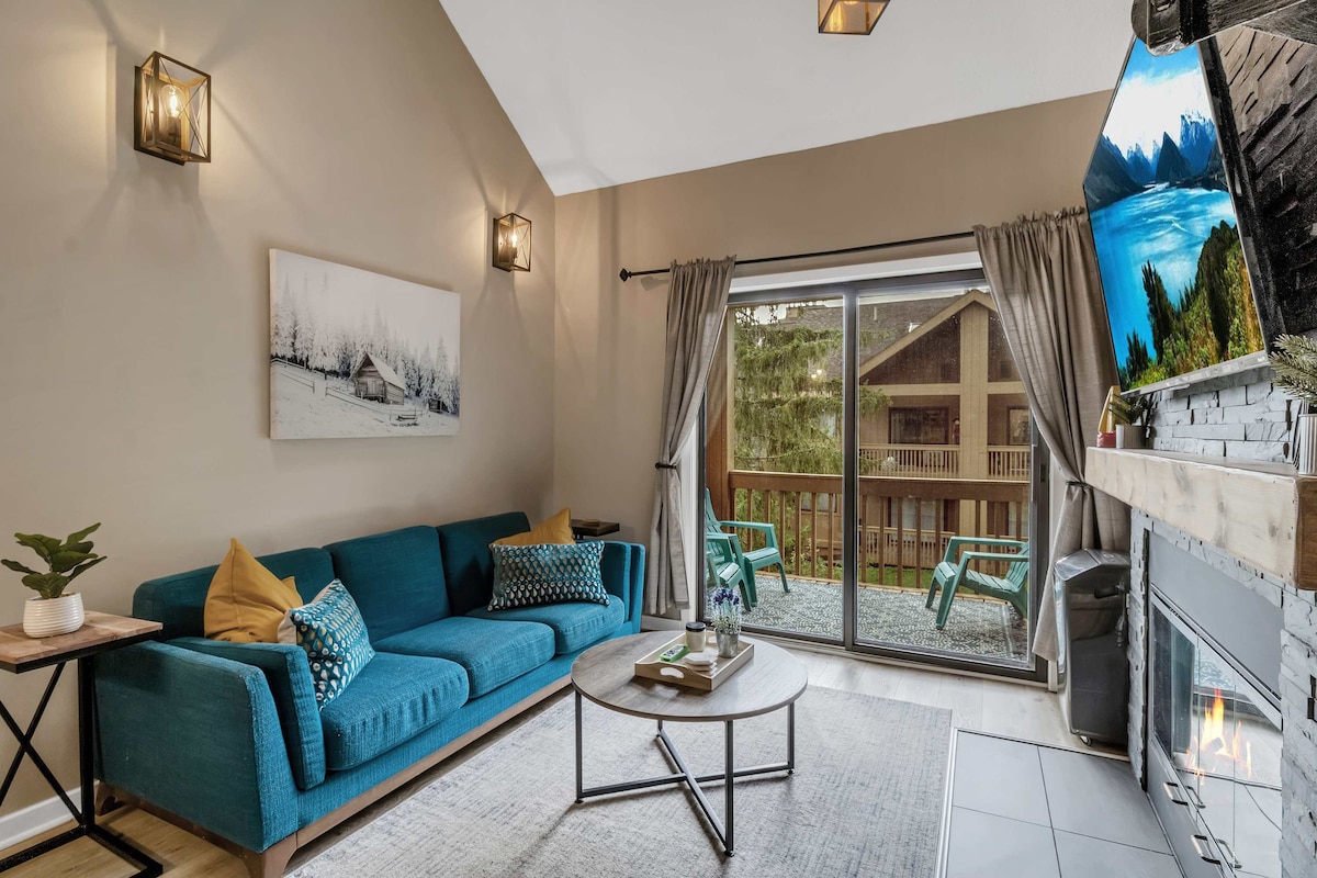 ¡Hermoso y moderno apartamento de 2 dormitorios y 1 baño perfecto para una escapada con amigos o un divertido fin de semana en familia! **25 % de descuento para reservas SEMANALES** Equipado con todas las comodidades del hogar, incluidas sábanas, utensilios de cocina, chimenea de gas, lavadora y secadora y un televisor en cada habitación. El sofá cama crea suficiente espacio para que se alojen 6 personas. ¡Ubicado a solo 1 milla del pintoresco pueblo de Ellicottville y a 2 millas de las pistas!