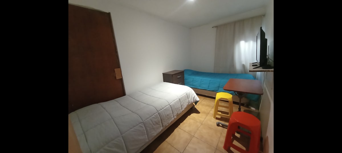 Departamento interior amoblado completo estacionamiento interior Cocina equipada Lavadora Segundo piso disponible Acceso independiente Wifi 2 habitaciones 1 cama matrimonial en una pieza 3 camas de 1 plaza en una pieza Baño privado