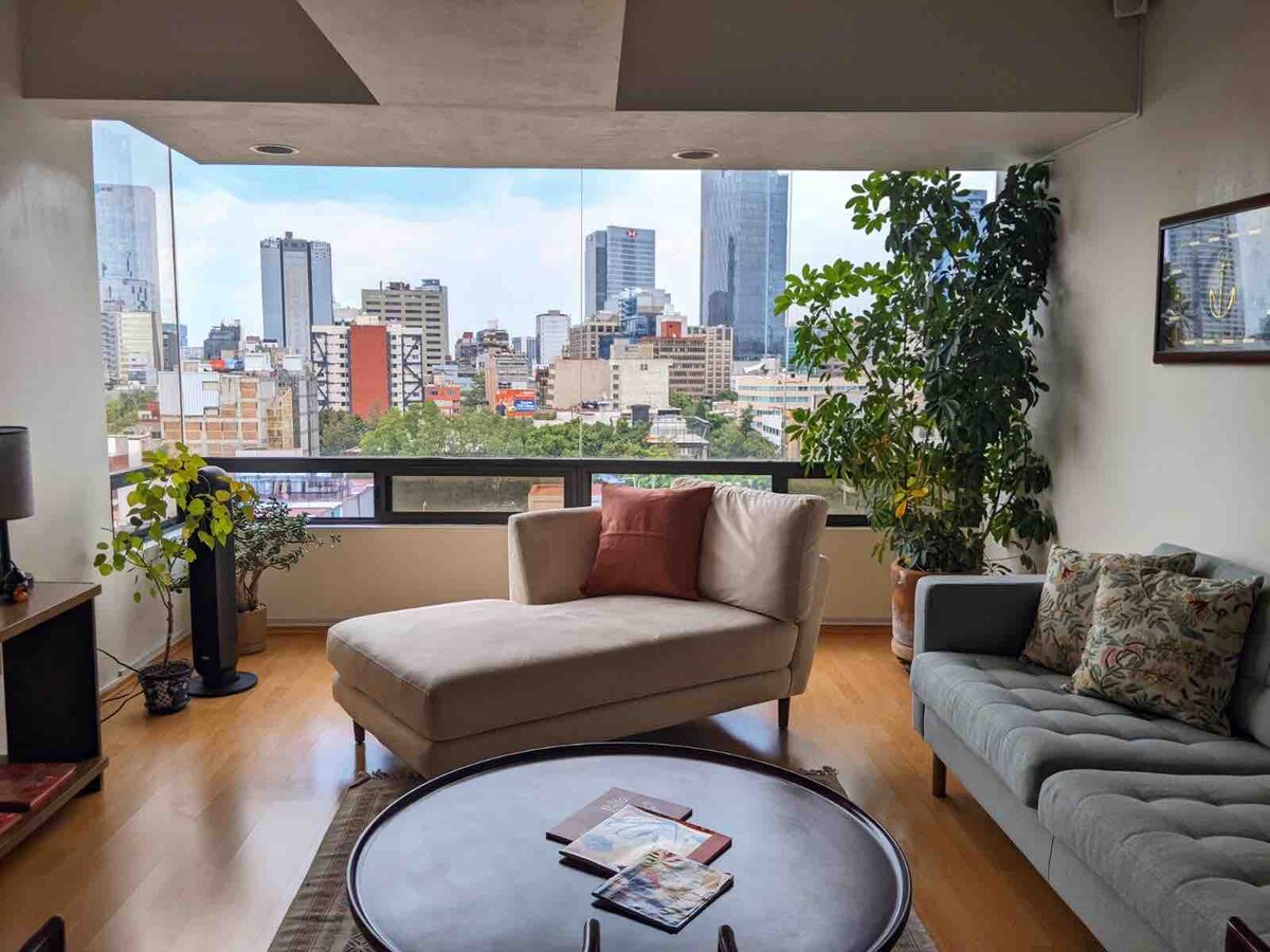 Disfruta de una de las zonas más asombrosas de la Ciudad de México. Este lugar es céntrico y está rodeado de restaurantes, museos y puntos de referencia icónicos dentro de la ciudad. La zona es fantástica y está muy bien comunicada con toda la ciudad. Te encantará la vista desde uno de los edificios más altos de la ciudad. Sin duda, es un lugar excepcional para alojarse y experimentar una de las mejores y más grandes ciudades del mundo.