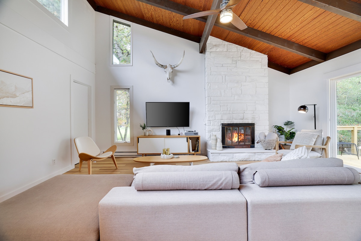 ¡La temporada de esquí y tubing está a la vuelta de la esquina! Escápate al "Eclipse", una moderna cabaña de inspiración escandinava ubicada en .5 acres con vistas a un sinfín de bosques. El Eclipse ofrece servicios cuidados, como una llamativa chimenea de gas, una divertida consola de arcade, golf de disco, etiqueta láser y un delicioso carrito de palomitas para las noches de cine. Relájate en el jacuzzi bajo las estrellas o disfruta del encanto en forma de A iluminado con LED. En 'Eclipse', todas las estrellas se alinean para una estancia verdaderamente mágica.