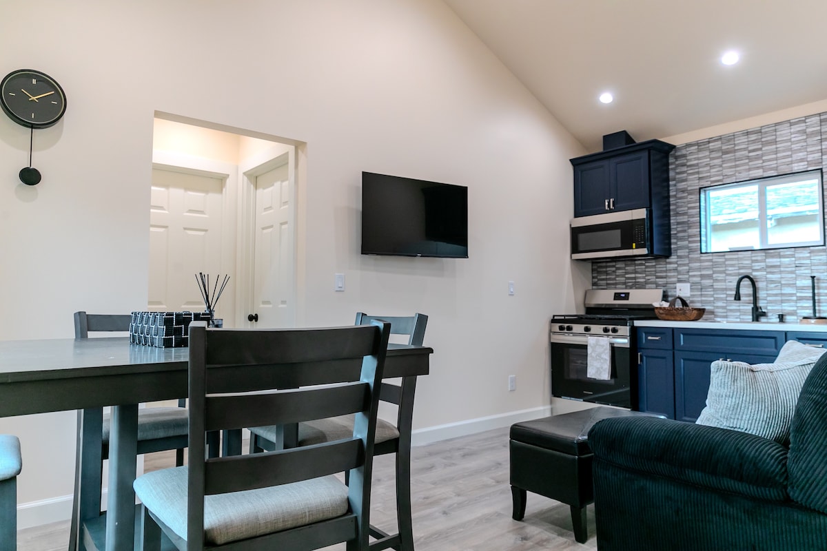 Our cottage can be your comfortable home away from home. The galley kitchen features a gas stove plus oven, refrigerator and freezer, plus Keurig coffee maker. Want to make your own breakfast smoothie? There's a Vitamix for you. Prefer french press coffee? We have have a burr grinder and french press for you. Enjoy your breakfast or your evening glass of wine on your own private patio or kick back while watching your favorite show or movie on our smart TV.