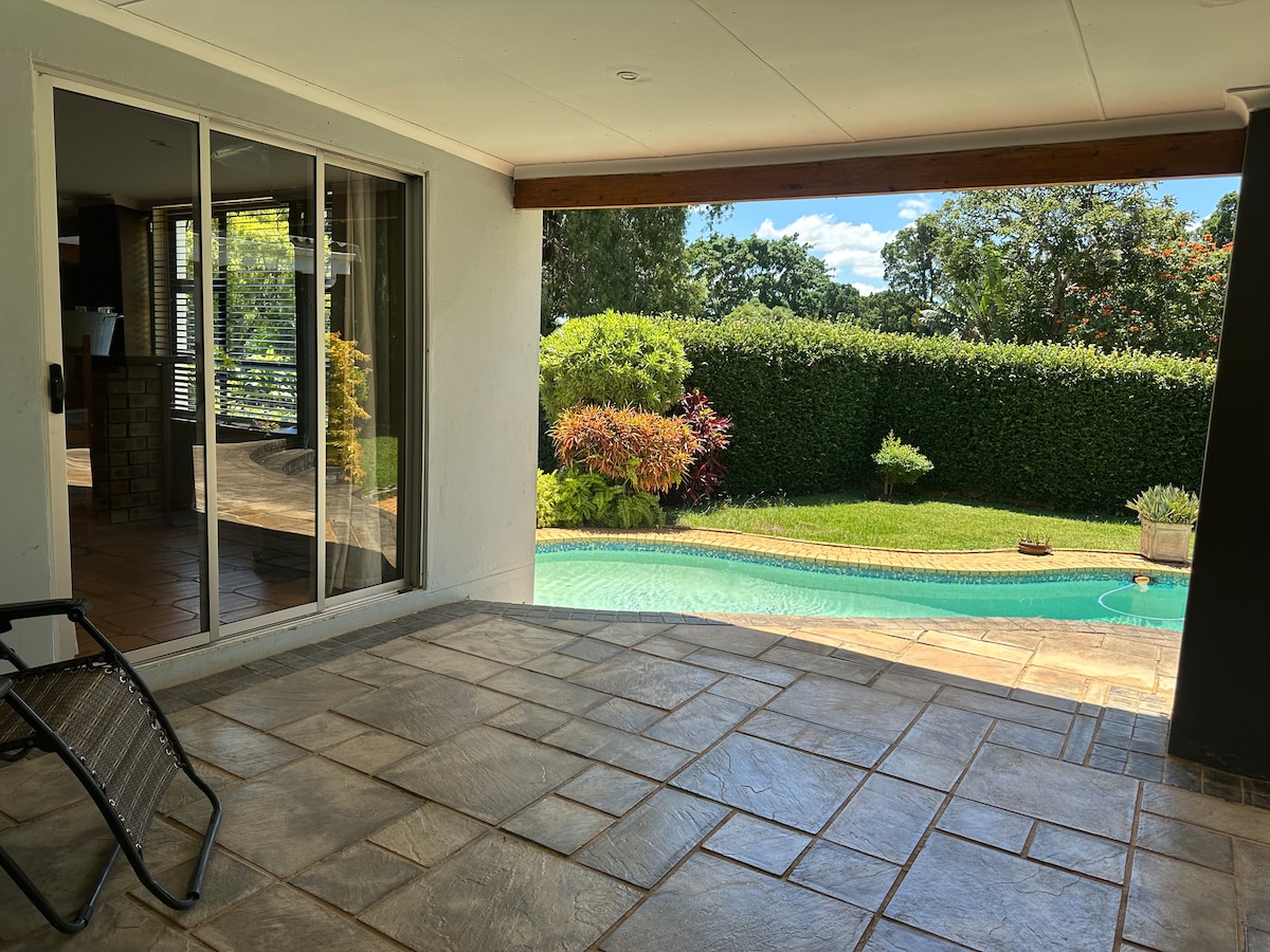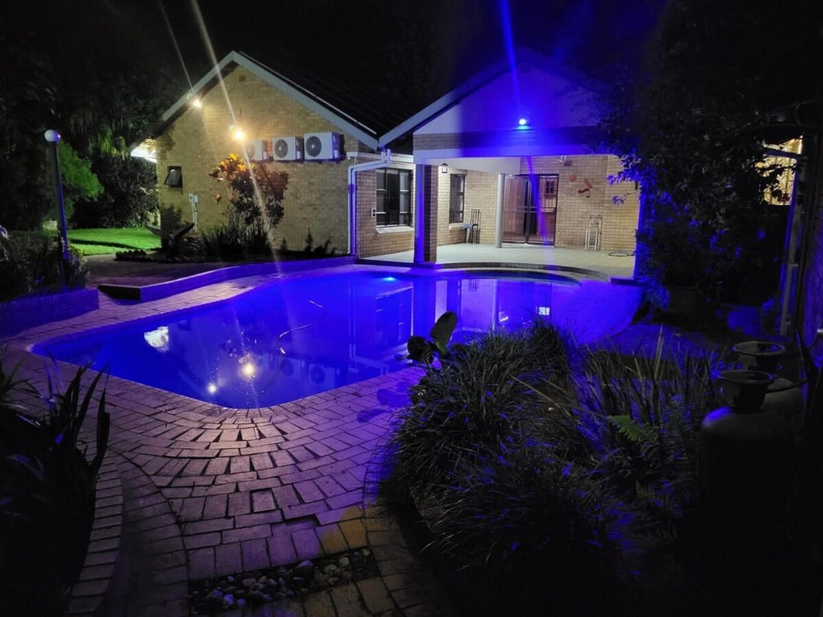 Bienvenido a nuestra tranquila casa de huéspedes en el corazón de los suburbios de Empangeni. Ubicado en una casa grande con una arquitectura impresionante y un hermoso jardín. Esta habitación tiene un baño privado con una ducha y acceso directo al jardín y vistas. Equipado para el clima caluroso de Zululandia, hay un aire acondicionado. Los huéspedes podrán acceder a un televisor inteligente y a una conexión wifi de alta velocidad. Disfruta de un baño en la piscina o relájate junto a la chimenea después de un largo día. (Consulta otras habitaciones que aparecen en nuestro perfil del anfitrión para encontrar tu habitación ideal).