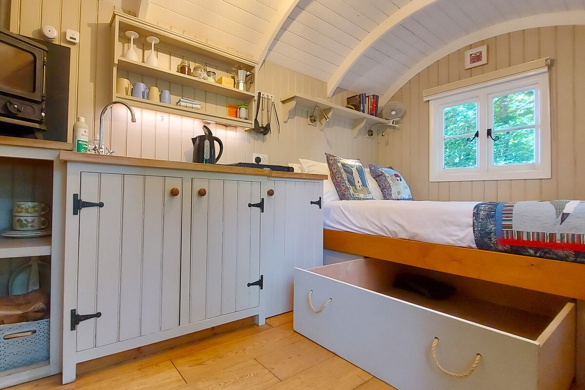 ¡Hermosa caja de caballos vintage con encanto rústico! Totalmente equipado con utensilios de cocina, té, café, un acogedor quemador de leña y energía solar. Ubicado en los terrenos mágicos de una mansión del siglo XIII Disfruta de una ducha privada con calefacción de gas, un inodoro de compostaje y un punto de agua. Relájate en tu propia zona de estar con fogata o explora el enorme jardín compartido con una casa del árbol, una cama elástica y una fogata comunitaria. ¡A solo 10 minutos de la impresionante Costa Jurásica, perfecta para aventuras familiares! Mascotas bienvenidas. Capacidad para 4 personas.