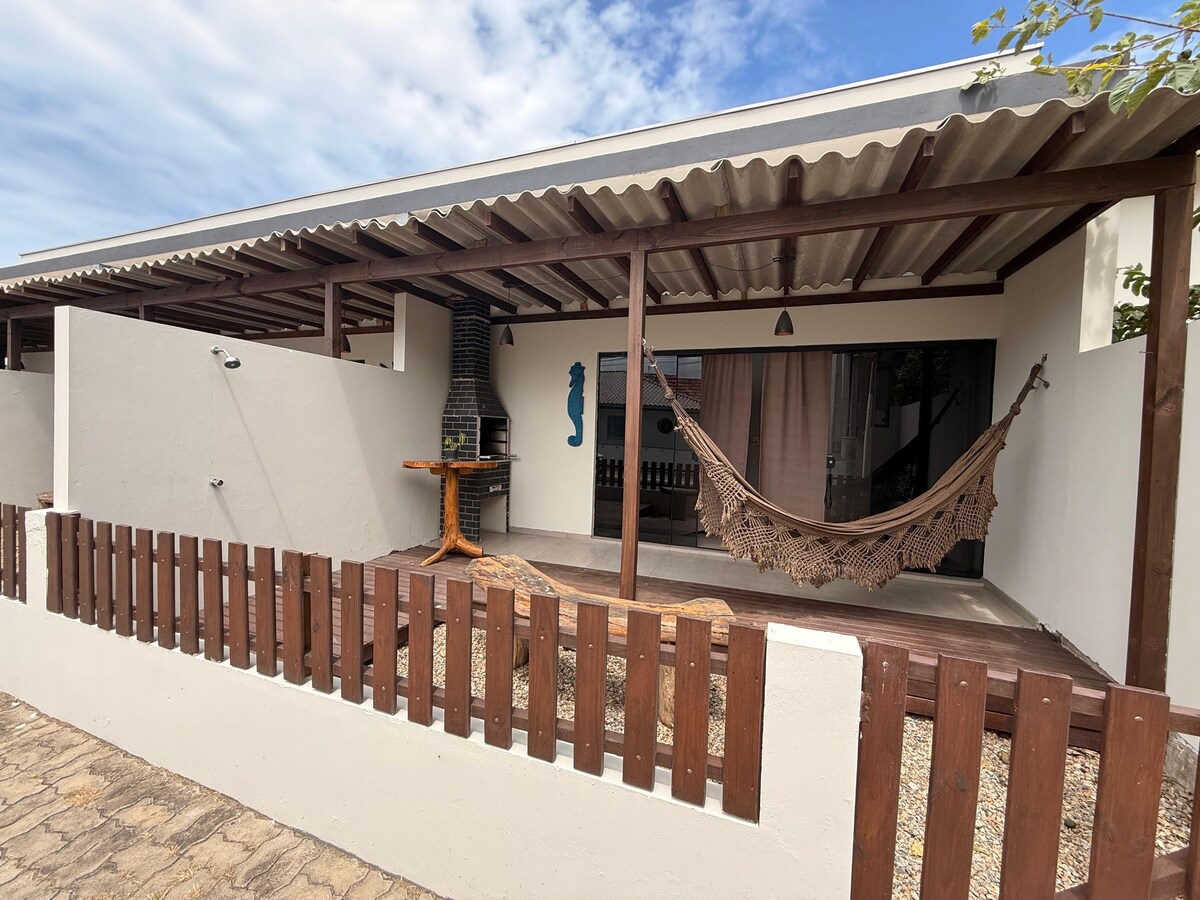 Si estás buscando días de descanso y diversión en familia, ¡has encontrado el lugar adecuado! La casa tiene 3 dormitorios, 2 unidades de aire acondicionado de 9000BTU. En la sala hay 2 ventiladores de techo con control y 2 ventiladores portátiles. Disponemos de una zona de barbacoa ventilada, hamaca, sillas de playa y cocina totalmente equipada. Smart TV y WIFI gratuito. La casa está a 300 metros de la tranquila playa de Enseada, cerca de las tiendas locales y con garaje para hasta 4 coches.