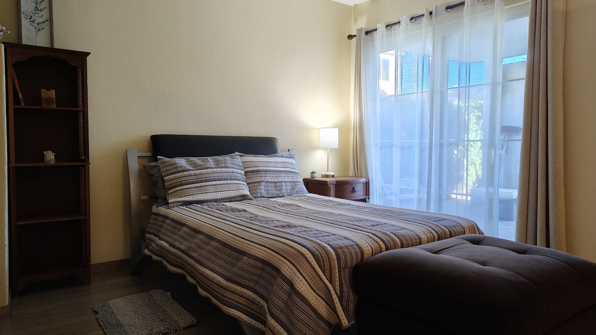 Privacidad y Tranquilidad. Es una habitación con cama Queen, sillón para leer, cocineta, micro ondas. También cuenta con una Smart TV, Mini split (Frio / Caliente) WIFI y un closet para poder colgar su ropa cómodamente. Es una habitación ideal para relajarse y descansar. Cuenta con un cajon de estacionamiento. Rapido acceso a la carretera, estamos a 15 min del Valle de Guadalupe y a 5 min del centro de Ensenada.
