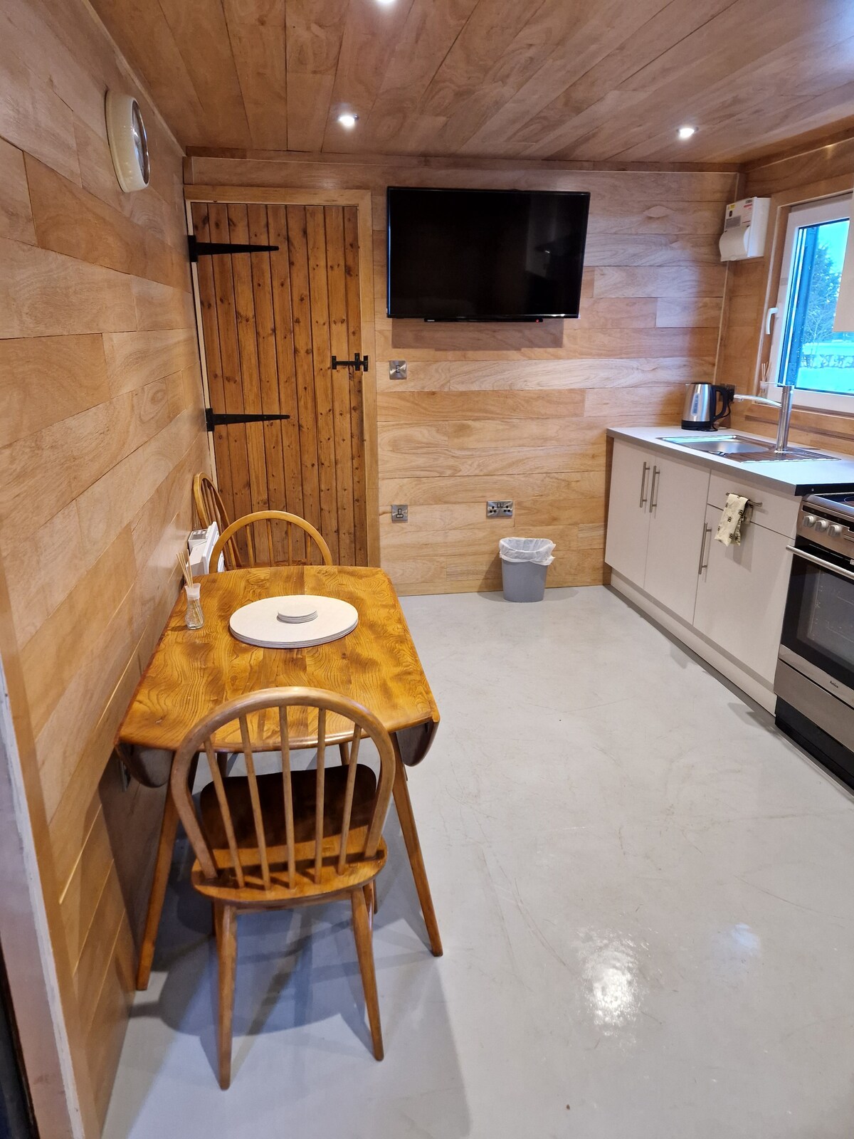 Enjoy nature when you stay in this unique place. Oaklands container is located on a working farm and has an onsite Boarding kennels, although situated well away, some noise may occasionally be heard. The container has an open plan kitchen/living space with a Sofa bed and dining table . The main bedroom has 1 double bed. Private bathroom with shower.