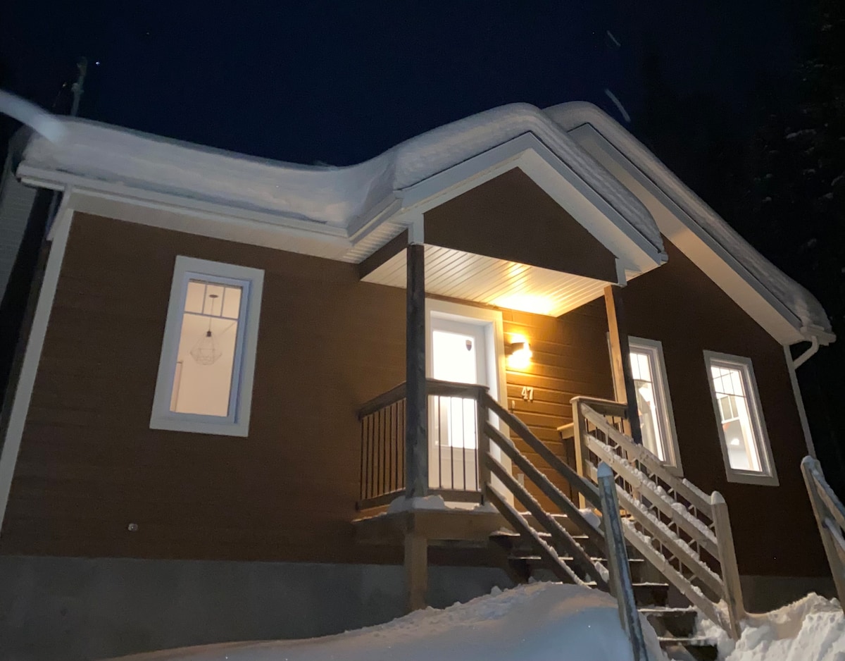 Nuestro chalet en el bosque nórdico es perfecto para pasar tiempo de calidad en pareja (o con un niño) o para un tratamiento de trabajo (con wifi de alta velocidad). El interior de madera es cálido y acogedor. Las ventanas de altura completa ofrecen unas vistas impresionantes sobre un valle boscoso. La cocina y la sala de estar de concepto abierto te mantienen en la conversación mientras cocinas. Si prefieres cocinar al aire libre, hay un fogón con parrilla y mesa de comedor al aire libre. A solo 70 minutos en coche de Montreal. El lago está a 25 minutos a pie si estacionás cerca.