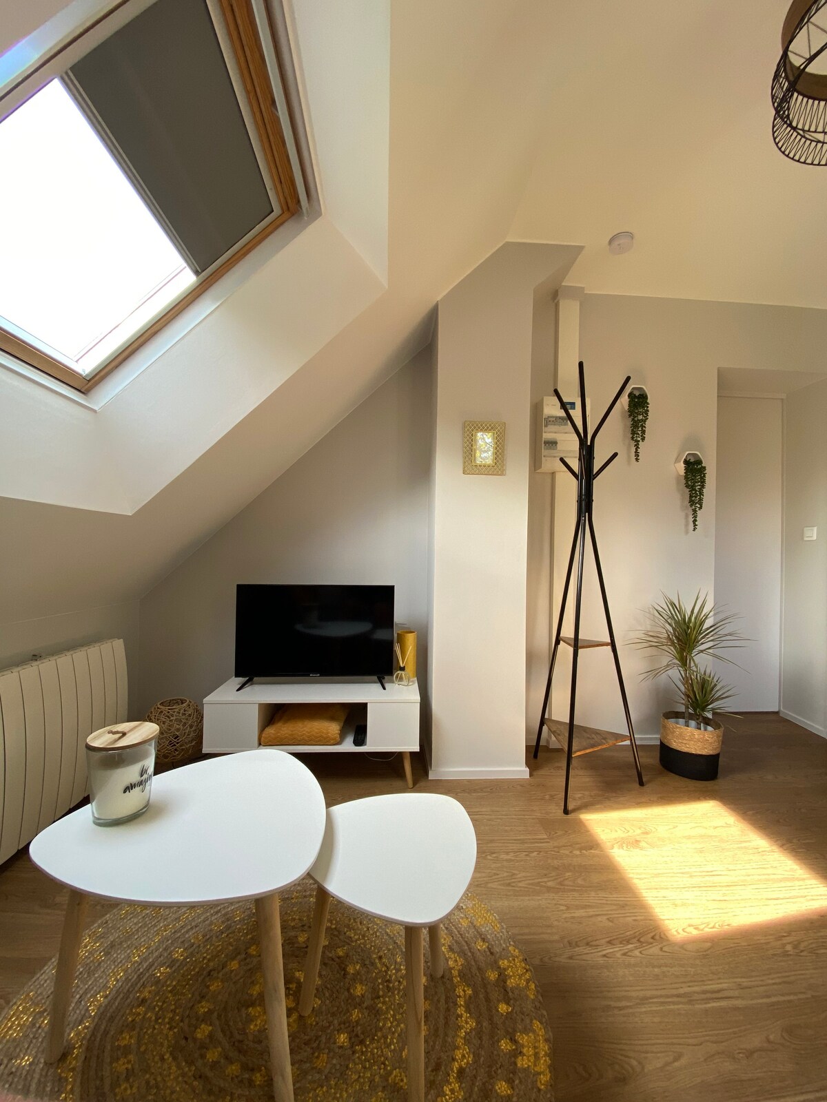 Un apartamento moderno y luminoso equipado con una habitación principal con cocina y sala de estar (banco convertible), 1 dormitorio con una cama de 160 y un baño con inodoro. También dispone de 1 terraza y un jardín tranquilo y sin vecinos. El alojamiento está pegado a nuestra residencia principal, pero tiene una entrada independiente. Adecuado para 2 personas o pareja + niño pequeño. Cuna plegable disponible bajo petición. No incluye sábanas ni toallas.