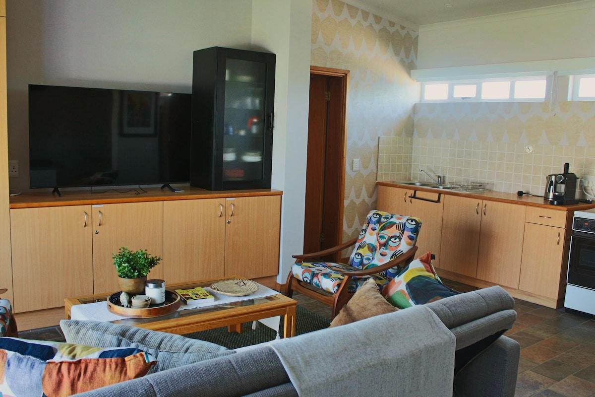 El bonito y amplio apartamento con vistas al mar está equipado con suelos de madera, amplia cocina con zona de estar, un amplio dormitorio y un pasaje al salón con vistas al mar de fondo. Literalmente puedes disfrutar de la vista del mar desde la cama. Del mismo modo, el salón está colindante con una gran terraza amplia a la que solo se puede acceder a este apartamento. Es una casa de campo Swakop bellamente renovada con encanto, muy céntrica, a 2 minutos a pie del mar , Spar y restaurantes.