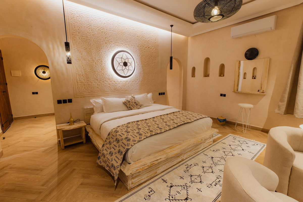 L'auberge la Maison Rurale se situe au pieds des dunes de sables. On vous accueille dans un cadre chaleureux, agréable et authentique pour une expérience de qualité. Pour compléter votre voyage, on vous propose des activités comme: - Tours de 4X4, - Balades en draumadaires, - Nuits en bivouac, - Séance de quads, Et encore plein d'autres surprises. Il est possible de louer en demi pension et pension complète ! On a hâte de vous accueillir dans ce cadre merveilleux.