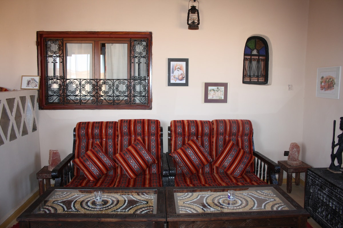 ¡Marhaba! Estamos encantados de darte la bienvenida a nuestro bed and breakfast familiar y operado. Estamos ubicados en Khamlia, Marruecos, a pocos minutos de las dunas de Erg Chebbi en el borde del vasto desierto del Sáhara. Con nosotros experimentarás verdadera hospitalidad, cultura del desierto y comodidad en nuestro cálido y acogedor oasis en el desierto. Encontrarás una experiencia aquí como ninguna: paisajes increíbles, cielos nocturnos impresionantes y ricas tradiciones culturales. Ven a relajarte con nosotros y diviértete en un momento inolvidable.