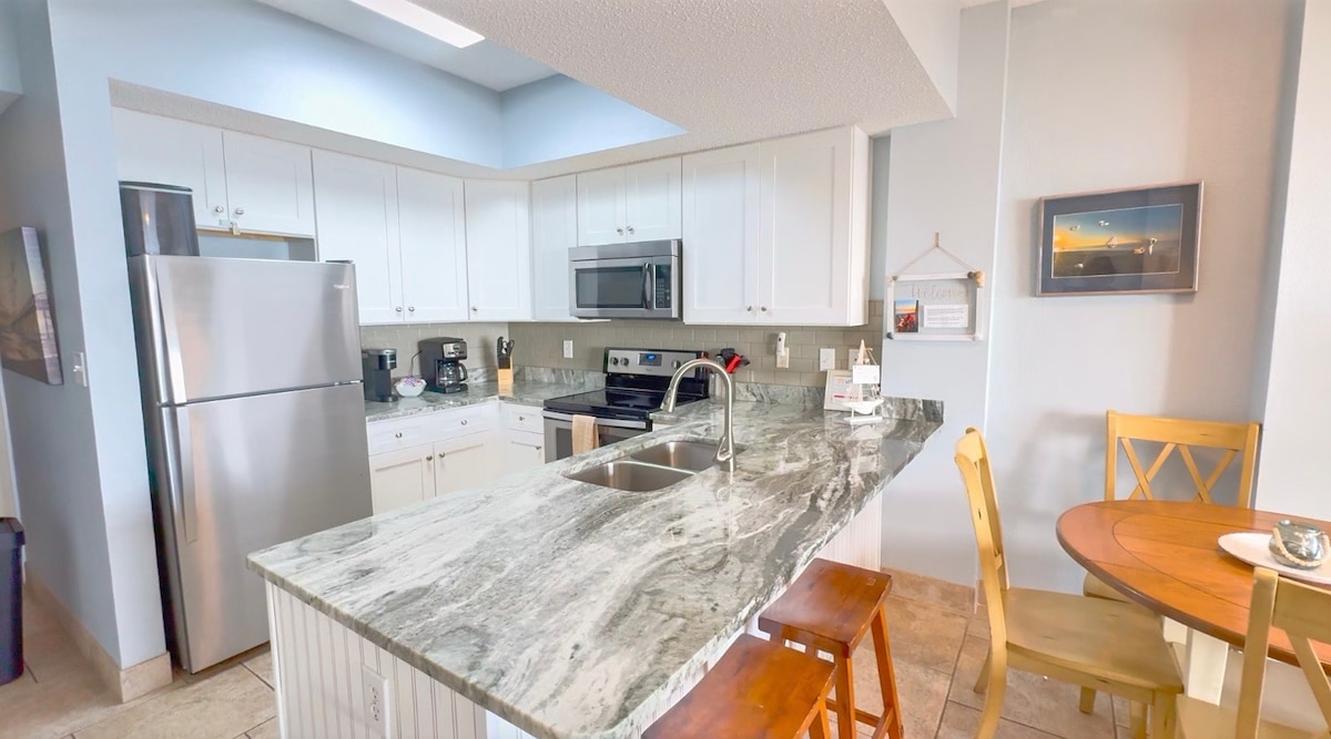 ** Upgraded for better comfort ** VIEW - VIEW - VIEW! Elevate your vacation (literally) with this gulf-side retreat boasting unobstructed 180 degree waterfront views. You'll be centrally located between the indoor and outdoor pools, spa treatments, watersports, activities galore, endless sugar-white sand and year-round Pensacola Beach festivities.