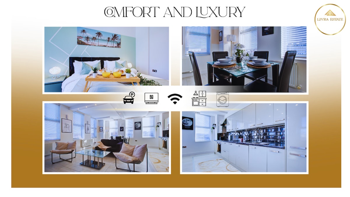 Alojamiento de lujo de 2 dormitorios, estacionamiento gratuito, gimnasio, West Wimbledon