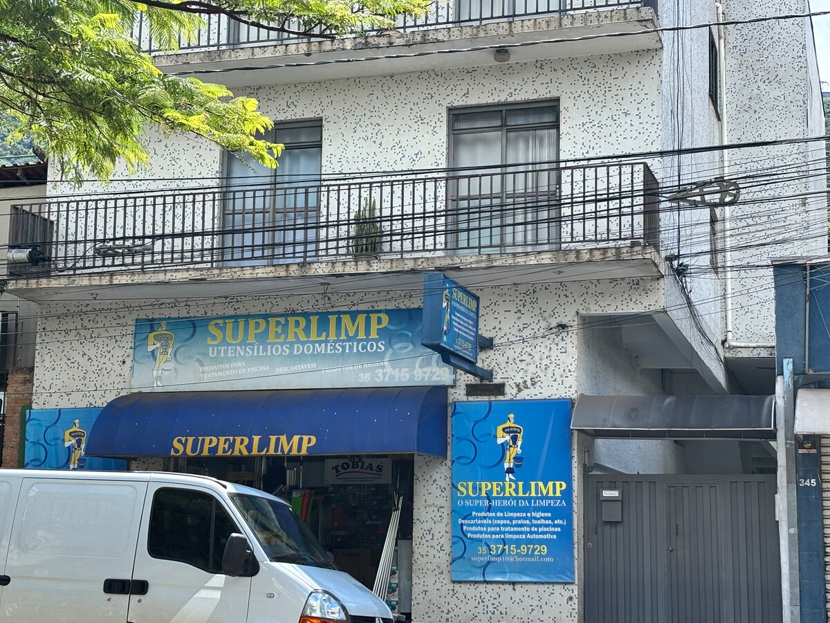 Tenha uma legítima experiência em Minas Gerais, ficando numa casa grande com quintal, onde poderá ver os pássaros e ouvir as badaladas do sino da matriz ...os pontos turísticos urbanos e balneários são super pertinho dessa deliciosa acomodação...!!! Tem comércio em geral na própria rua como : padaria, hortifruti, farmácia, academia particular e ao ar livre grátis , pet shop . A sorveteria é na rua de baixo. E o supermercado fica a 100 m....!!!