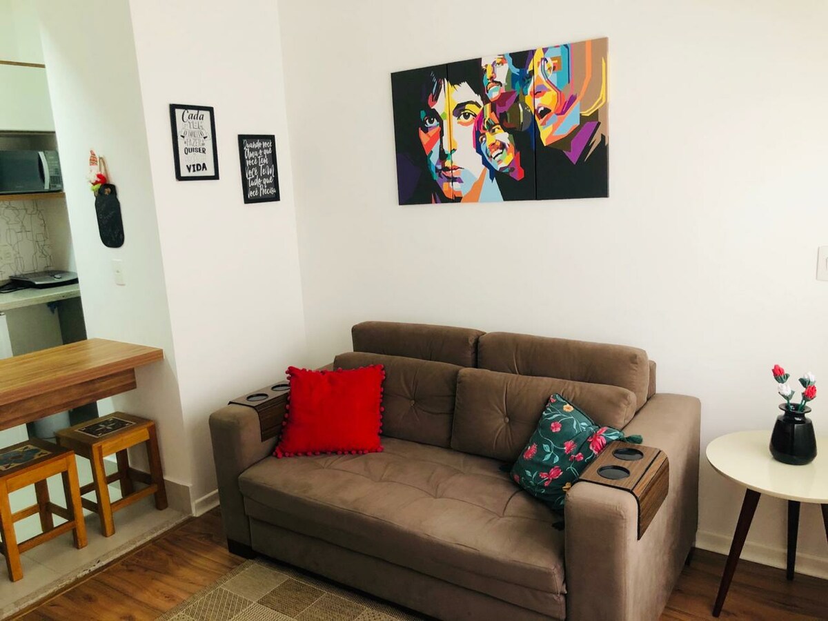 ¡Gracias por considerar nuestro apartamento para su estancia! Aquí, tendrás toda la comodidad y limpieza en una ubicación privilegiada en el centro de Poços de Caldas. El apartamento es nuevo, tiene internet de alta velocidad, cama doble y un sofá cama, por lo que puede alojar hasta cuatro adultos. Bajo demanda, también tenemos cuna y silla alta disponibles. El edificio cuenta con sala de cine, lavandería, área gourmet, gimnasio y ¡una plaza de garaje cubierta por apto! ¡Haremos de su estancia una experiencia única!