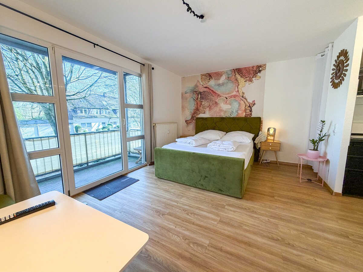 Este apartamento de 28 m ² está RECIÉN renovado y equipado con todas las comodidades. Iluminación indirecta, un baño nuevo, una cocina totalmente equipada y un acogedor comedor, el área de trabajo ofrece el lugar perfecto para quedarse para viajes de negocios, visitas familiares o visitas generales a Essen. A 10 minutos a pie de la estación principal de tren, Rüttenscheid, la Filarmónica y el centro de la ciudad de Essen. El apartamento está situado directamente en el jardín de la ciudad de Essen y le invita a quedarse.