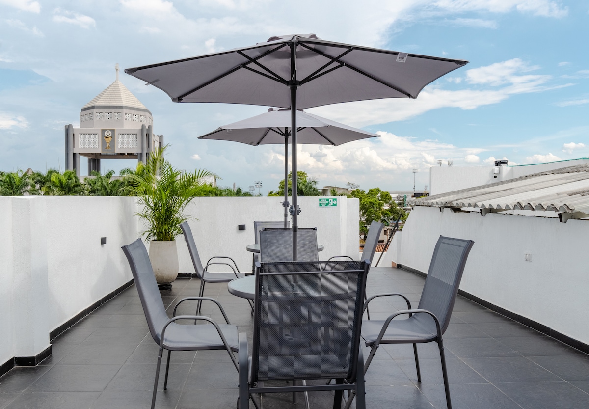 Hospédate en una habitación privada con cómoda cama doble, baño propio, aire acondicionado, TV, minibar y wifi rápido. La reserva incluye acceso a las zonas comunes: cocina equipada con cafetera, terraza y hamaca. Contamos con vigilancia 24/7 y restaurante en el hotel. No tenemos parqueadero, pero te recomendamos uno cercano (costo aparte). Ideal para viajes de trabajo o descanso en el norte de Cali.