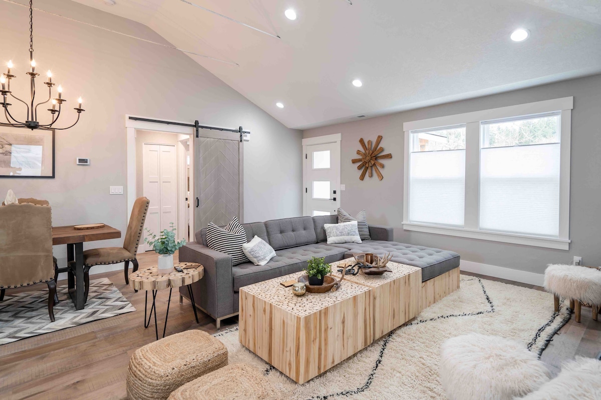 ¡Encantador AirBnB cerca de todo! Cerca de la Universidad de Oregón, el estadio Autzen y el hospital RiverBend. Cerca de excelentes restaurantes y tiendas en Oakway Center y a pocos minutos del centro de Eugene. A poca distancia a pie del parque infantil. Este acogedor bungalow de 2 dormitorios es encantador y sofisticado. Dos camas tamaño queen, TV por cable e internet de alta velocidad. Decorado con elementos naturales y tonos tierra, este espacio es un oasis acogedor y relajante. ¡Patio totalmente vallado con patio, barbacoa y juego de cornhole!